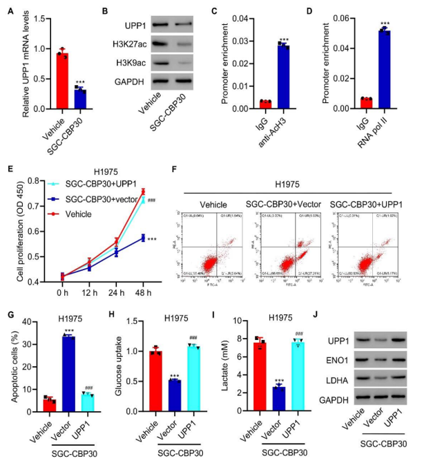 ⑥UPP1通过组蛋白乙酰化受到表观遗传调控:UPP1过表达可以逆转SGC-CBP30的抑癌作用。